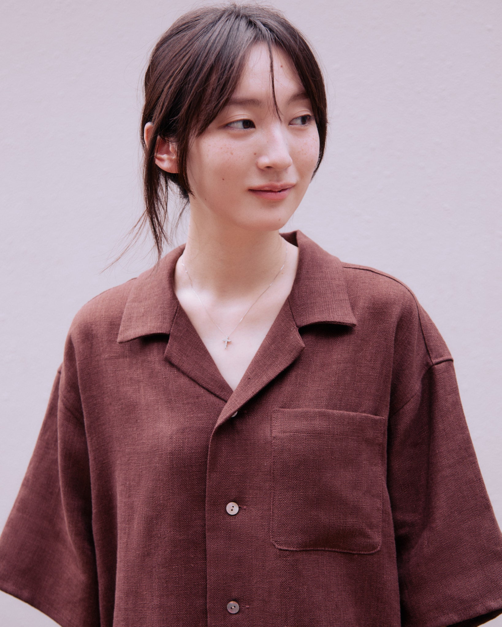 HEAVY LINEN RESORT S/S SHIRT -BROWN-
